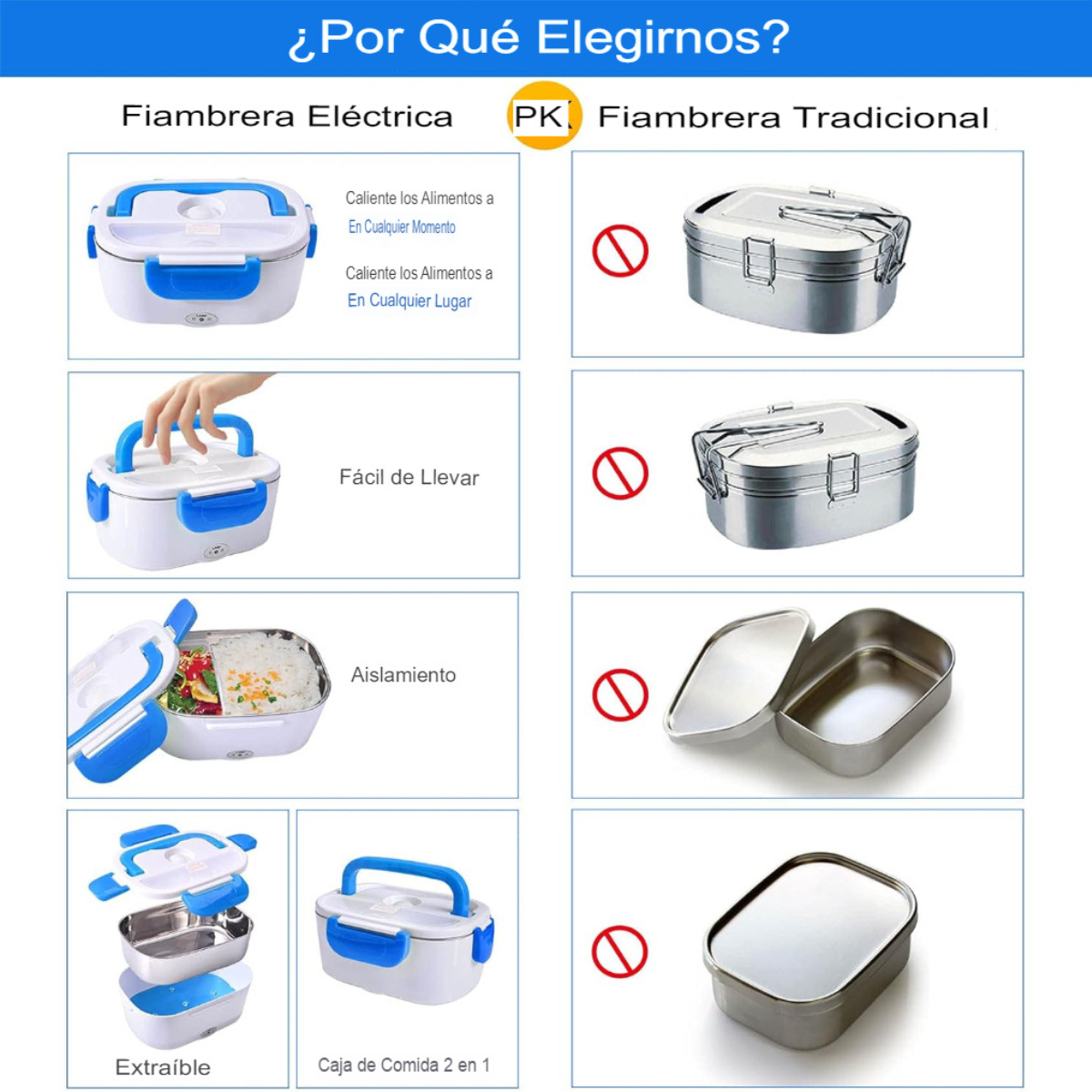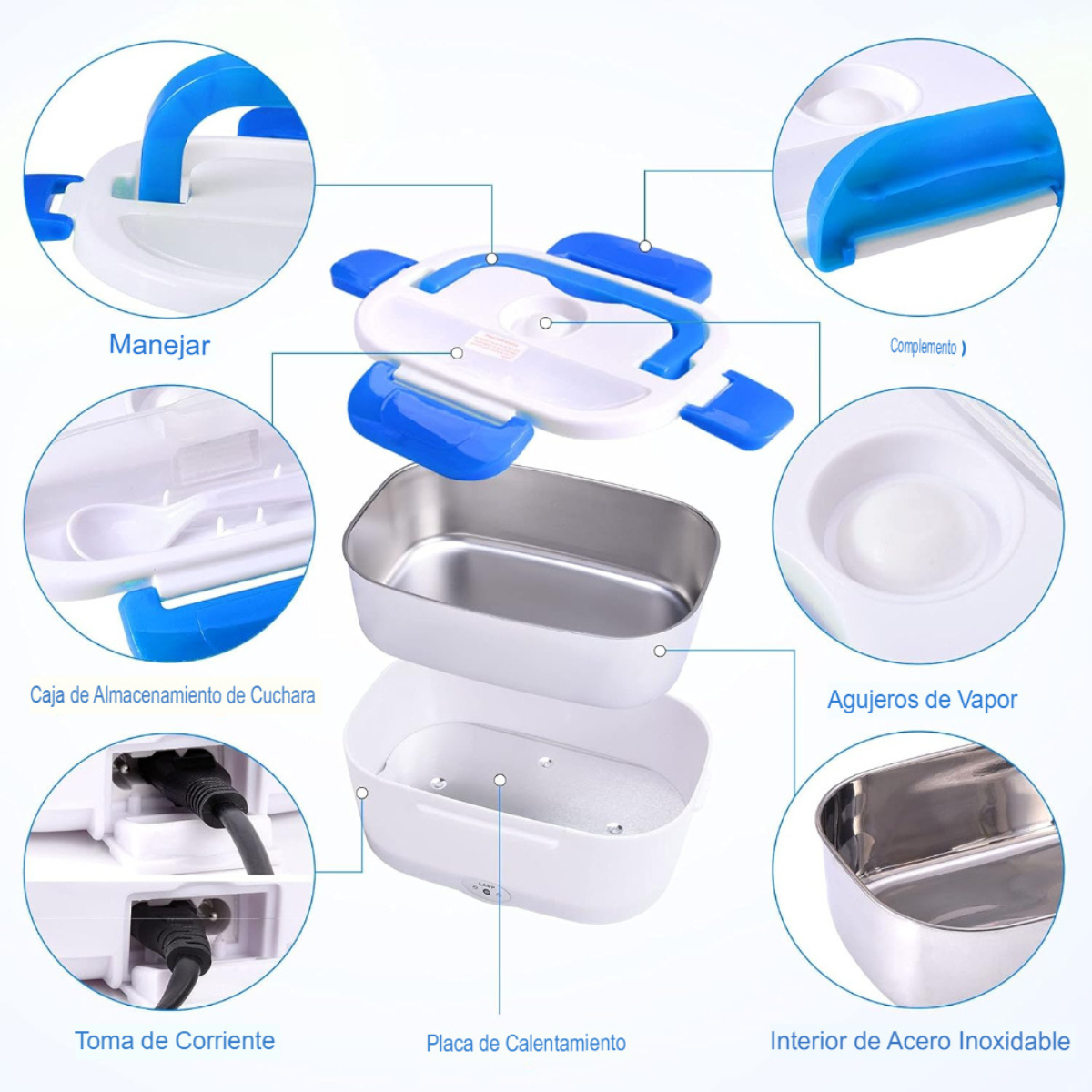 ¡Disfruta de comidas calientes en cualquier lugar con la Fiambrera Eléctrica Portátil Premium! Olvídate de las comidas frías y experimenta la comodidad de disfrutar alimentos caseros recién hechos en cualquier lugar. Más que una simple fiambrera, una solución integral para tus necesidades culinarias:- Frescura: Los compartimentos aislados con sellos de silicona de alta calidad mantienen tus alimentos frescos, evitan derrames y conservan los sabores originales. Disfruta de una experiencia sin preocupaciones.- Versatilidad para cada ocasión: Compatible con 220V para uso doméstico y 12V para el automóvil, esta fiambrera te permite calentar tus comidas en cualquier lugar, ya sea en la oficina, durante un viaje por carretera o en una excursión al aire libre.- Materiales seguros: Fabricada con plástico PP de grado alimenticio y un recipiente de acero inoxidable 304 resistente al óxido, esta fiambrera cumple con los más estrictos estándares de seguridad alimentaria. Puedes estar seguro de que tus alimentos se mantienen frescos.- Fácil limpieza: El recipiente de acero inoxidable extraíble facilita la limpieza después de cada uso. Además, un compartimento de plástico extraíble te permite separar diferentes tipos de alimentos, manteniendo sus sabores intactos.- Control de porciones: Ideal para preparar y llevar porciones controladas de comida, esta fiambrera te ayuda a mantener una dieta equilibrada. Cocina arroz, huevos, verduras, carne y mucho más, disfrutando de deliciosas opciones caseras en cualquier momento del día.